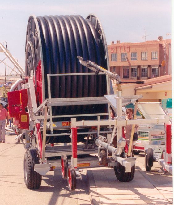 Máquinas concebidas como riego de apoyo, ideales para cereales, alfalfa, maiz, etc... con multitud de extras que puedes adaptar a tu enrollador, como levantamiento de la carretilla y del trinquete hidráulicos al tractor, ordenador, compresor de vaciamiento, cañón de ángulo variable..., todo ello unido a la fuerte estructura del chasis galbanizado en caliente, protegiendolo contra la corrosión durante largos años. Las medidas y longitudes varian del tamaño de la estructura de la máquina, pudiendo disponer de diámetros de manguera desde 50 m/m. hasta 135 m/m. y de 140 mts. hasta 550 mts. de largo total, con un grosor del polietileno de hasta 12 m/m. de pared.